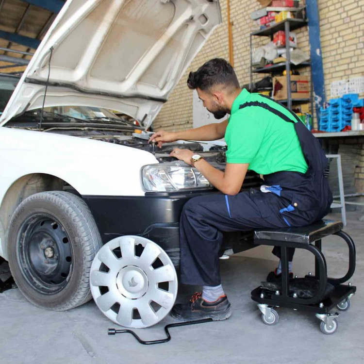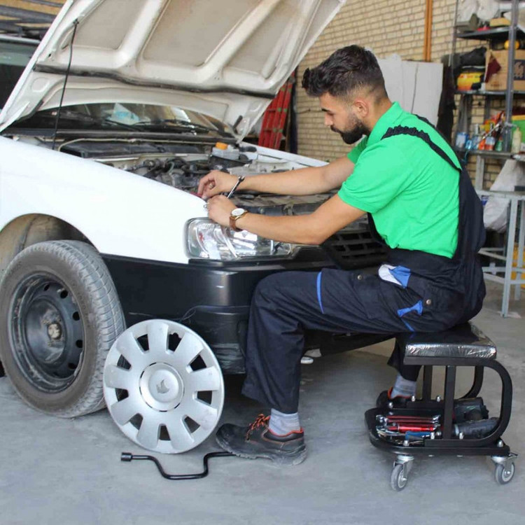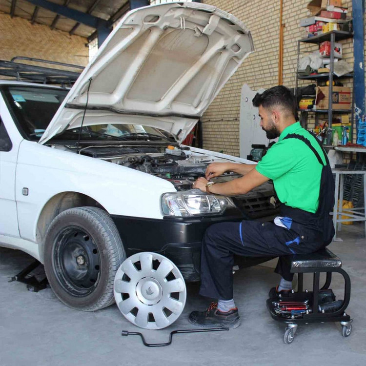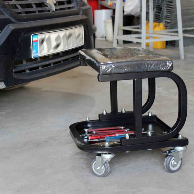 صندلی تعمیرگاهی 3003 دارای 4 چرخ (2عدد ترمز دار) بسیار نرم و روان به آن متصل است.محل نشیمن صندلی بسیار راحت و مستحکم بوده و سینی ابزاری که در زیر آن تعبیه شده است بسیار کاربردی میباشد.جنس بدنه این محصول فلزی بسیار مقاوم بوده و دارای رنگ کوره ای است.در تعمیرگاه ها، صافکاری ها، مراکز تخصصی خودرو مانند دیتیلینگ خودرو و حتی گاراژ منازل برای سرویس و کار بر روی خوردو نیاز به صندلی با ارتفاع کم و محل نگهداری لوازم وجود دارد، صندلی تعمیرگاهی مدل 3003 تولید مجموعه آذین صنعت میباشد و با ارتفاع 50 سانتیمتر این قابلیت را دارد که کاربر قسمت های پایین خودرو دسترسی راحت داشته باشد و بدون کمر درد و پا درد کار خود را انجام دهد.